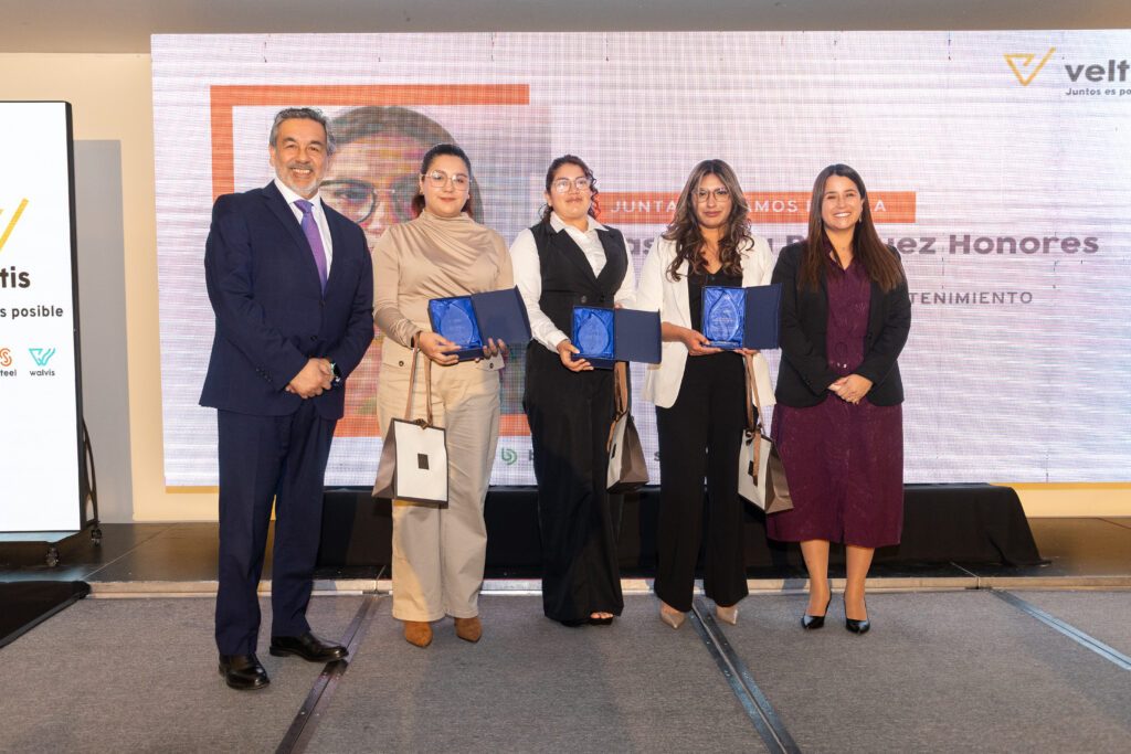 En la ceremonia también se distinguió a tres colaboradoras del programa “Creciendo Juntas”, una iniciativa de Veltis que fomenta la participación femenina en la minería mediante la capacitación en mantención de plantas.